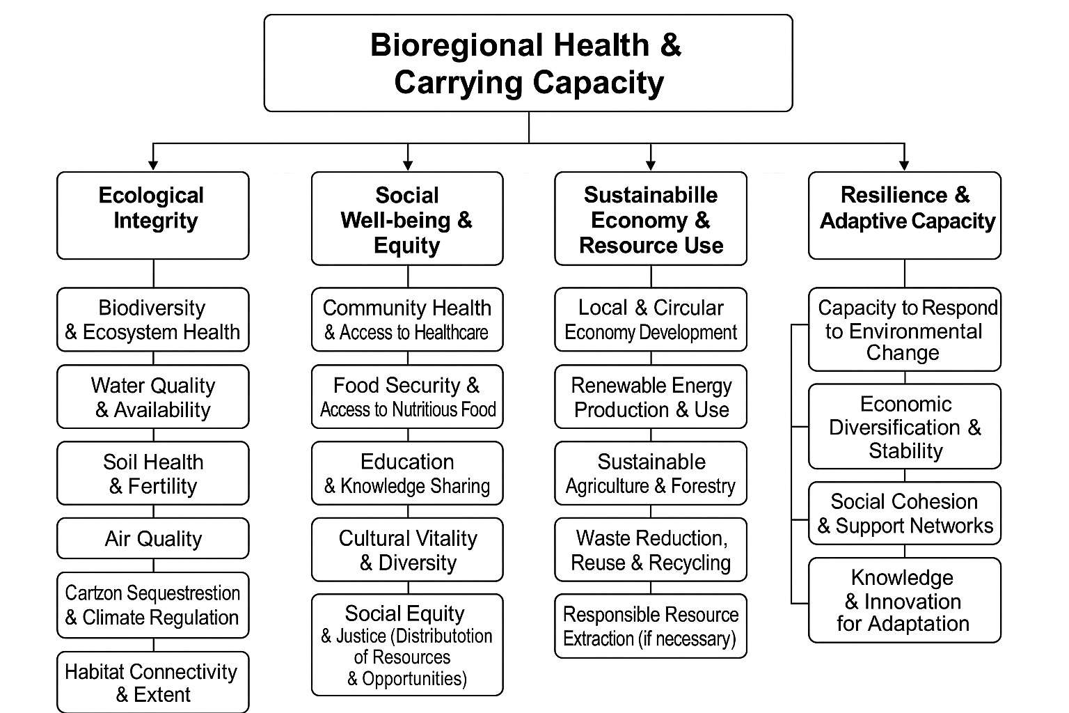 - Key Questions: What is the level of citizen participation in local decision-making? Are governance structures transparent and accountable? Do policies and regulations support bioregional health and sustainability? Are there effective mechanisms for resolving conflicts and fostering collaboration?